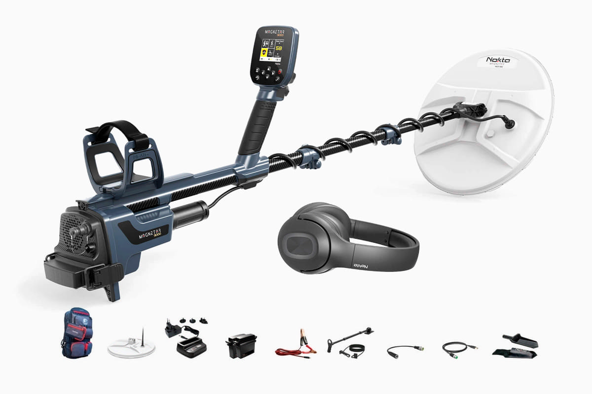 Комплект постачання Nokta Magnetar 9000 сформований як повноцінний професійний набір для польової роботи без необхідності докуповувати базові аксесуари. До стандартної комплектації входять елементи живлення, транспортні рішення, аудіообладнання та допоміжне оснащення для тривалого пошуку в складних умовах.